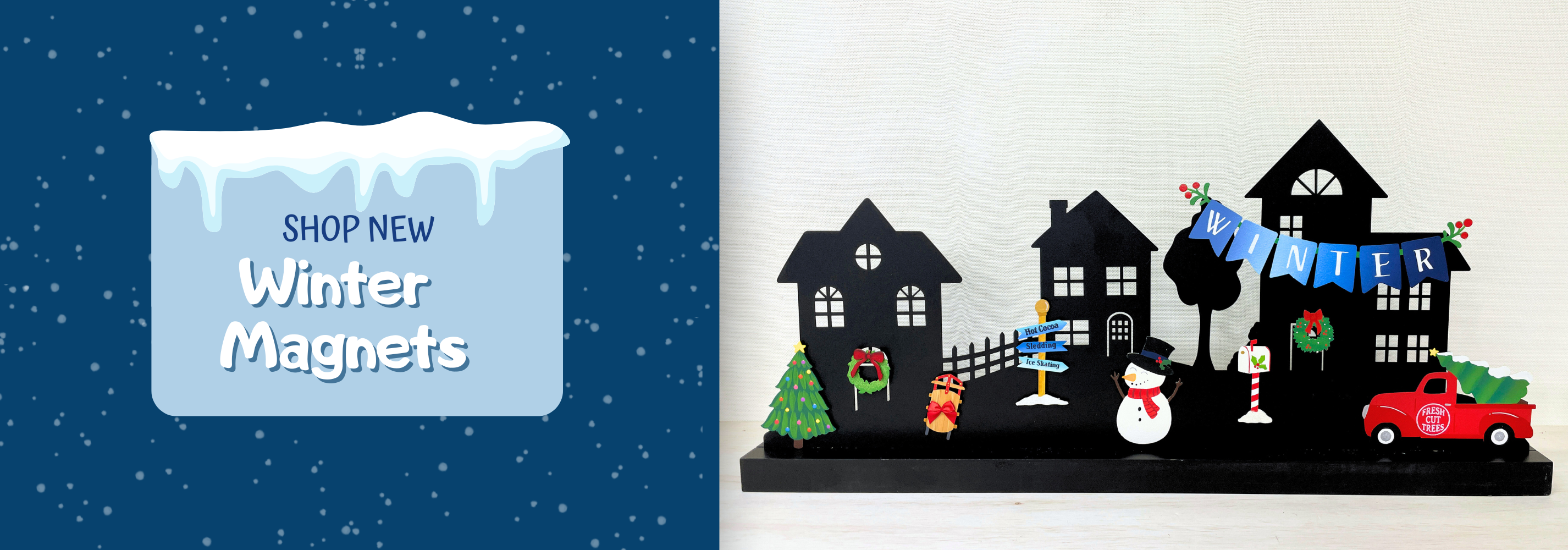 Das zeitlose Design des Winterhauses macht es zur perfekten magnetischen Kunstszene zur Dekoration dieser Weihnachtszeit. Es gibt so viele süße Weihnachtsmagnete, die es perfekt dekorieren!